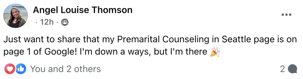 “Leanne is a great coach! She makes complex SEO topics simple and has helped me form a SEO process I can sustain while still running my business day to day. All along the way I am getting results and enjoying the process. I recommend her to entrepreneurs all the time as having her help is a game changer. She can help you independent of your SEO experience. I always come away from our conversations knowing what to do which gives me confidence in the process.”