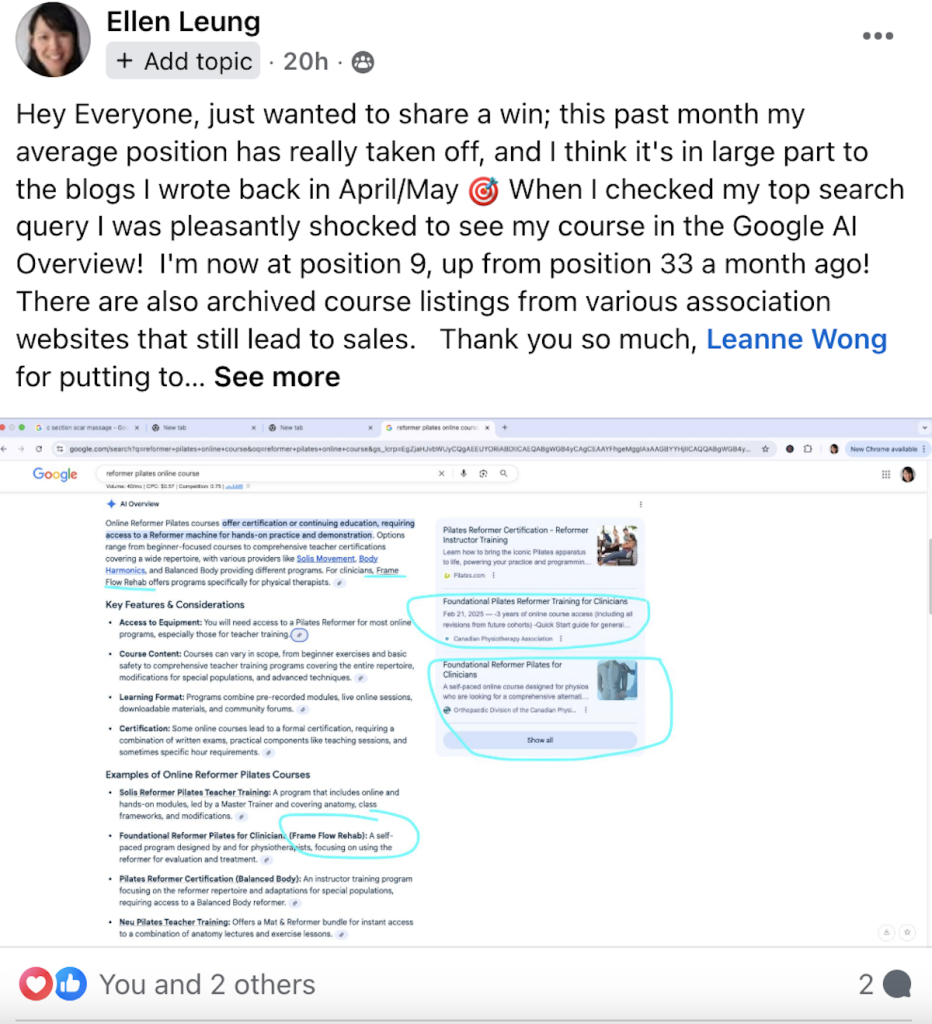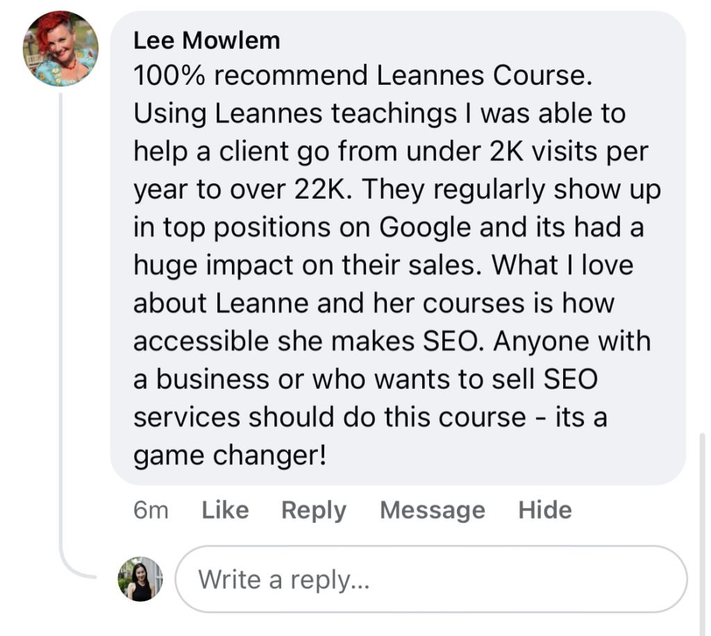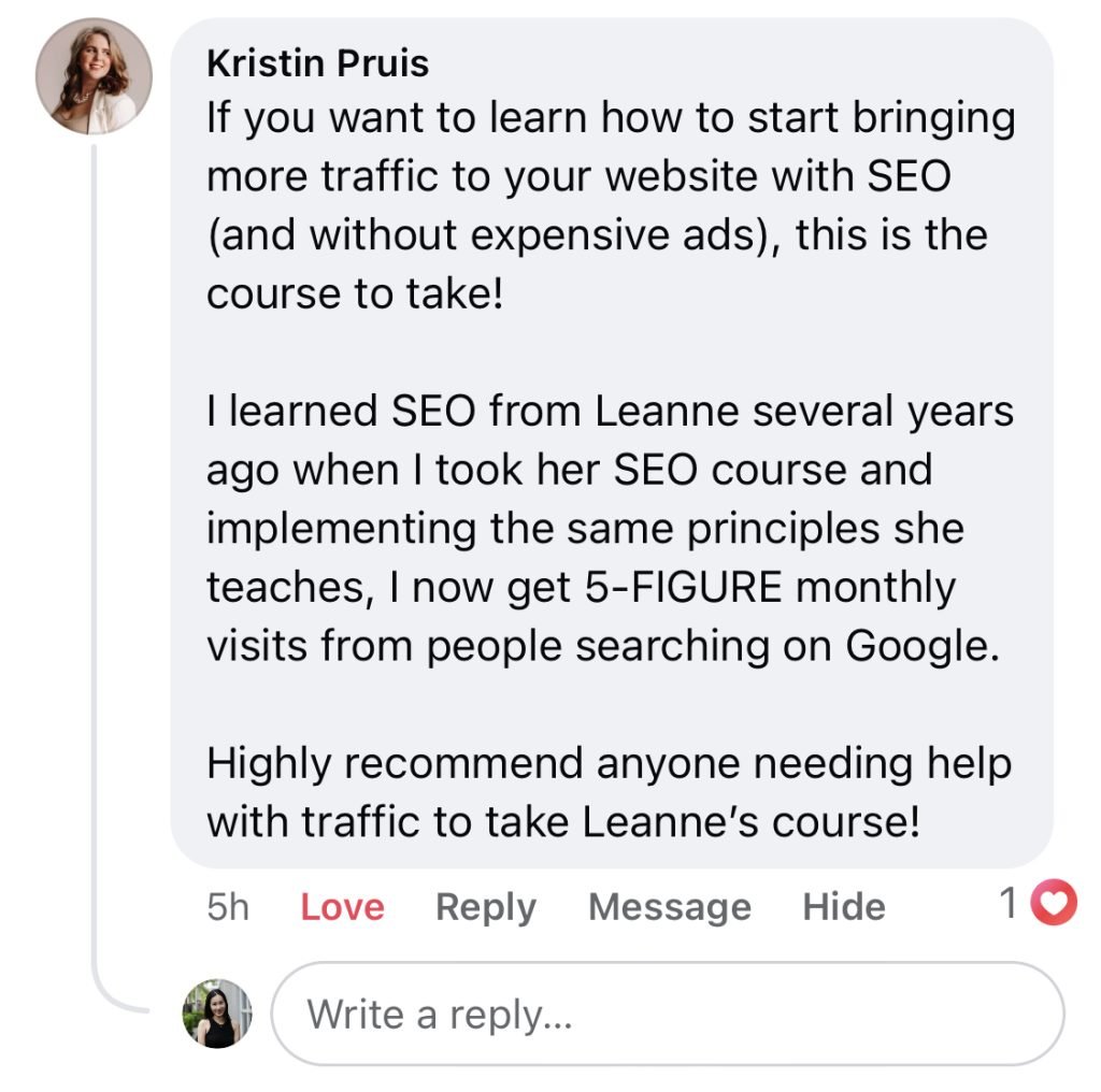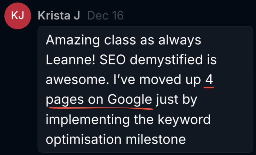 Many SEO course students have grown their business organically with more traffic and leads from Google.
